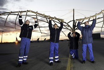 Mit zwölf dieser Flugzeugabfertiger, auch Loader genannt, entstand 2012 am Flughafen München das ungewöhnliche und weltweit einzigartige Musiktheaterprojekt "Schwerer als Luft" unter der künstlerischen Leitung von Nélida Béjar (Komposition) und Björn Potulski (Regie).