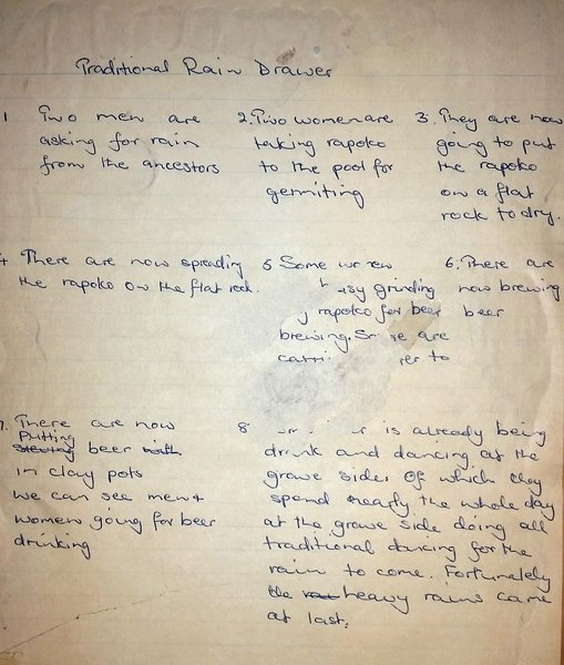Regenbeschwörung - auf der Rückseite des Bildes beschreibt Abishell Risinamhodzi