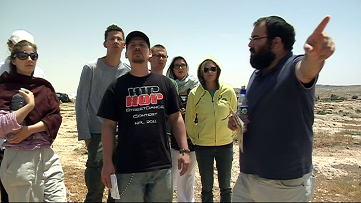 Auf ihrem Weg durch Israel und das besetzte Westjordanland begegnen sie auf beiden Seiten Menschen, die Wege der Verständigung mit dem "Feind" suchen. Daoud Nasser z.B., ein palästinensischer Bauer, der sich allein mit juristischen Mitteln der Gewalt der jüdischen Siedler widersetzt, der Rapper Amim, der "Kunst als Waffe" einsetzt, oder der orthodoxe Jude Yehouda Shaoul von "Breaking the Silence", der die Gruppe ins militärische Sperrgebiet südlich von Hebron führt. Er meint: "Israel ist nicht willkommen in dieser Region und wir müssen uns verteidigen können... wer aber gibt uns das Recht, anderen Menschen ihre Freiheit zu rauben..?"